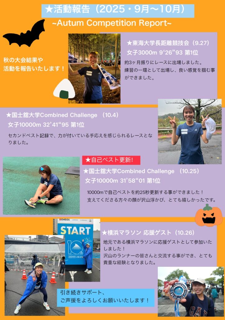 10月25日、国士舘大学において10000mの記録会にエントリーし